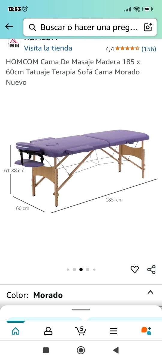 Camilla masaje,0 usos,va con la funda