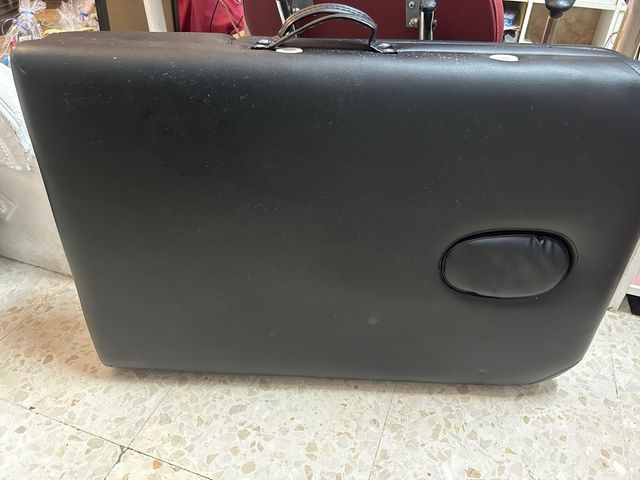 Camilla negra maletín plegable necesita arreglos en su cogida interior pero es fácil para quien sea manitas y la refuerce