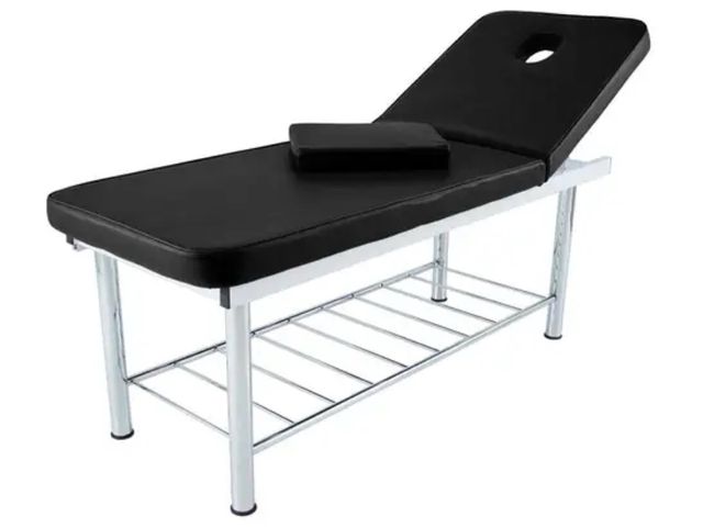 Su cabezal, con agujero facial, es regulable en inclinación de 0 a 40º y el peso máximo soportado de hasta 150 kg.
