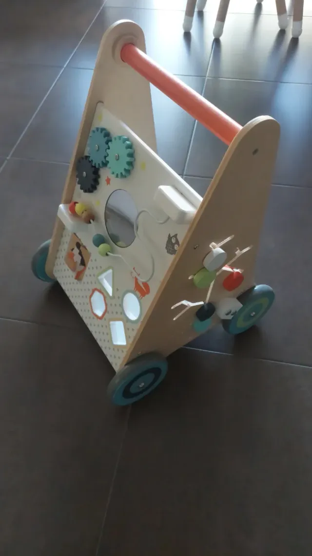 Detalles del productoCaminador de madera para ayudar a los más pequeños a dar sus primeros pasos. Un juguete educativo con múltiples actividades.