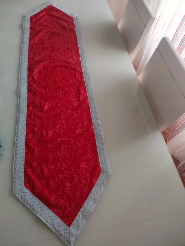 Detalles del productoElegante camino de mesa de color rojo y filos en plateado brillante, ideal para decorar tu mesa.