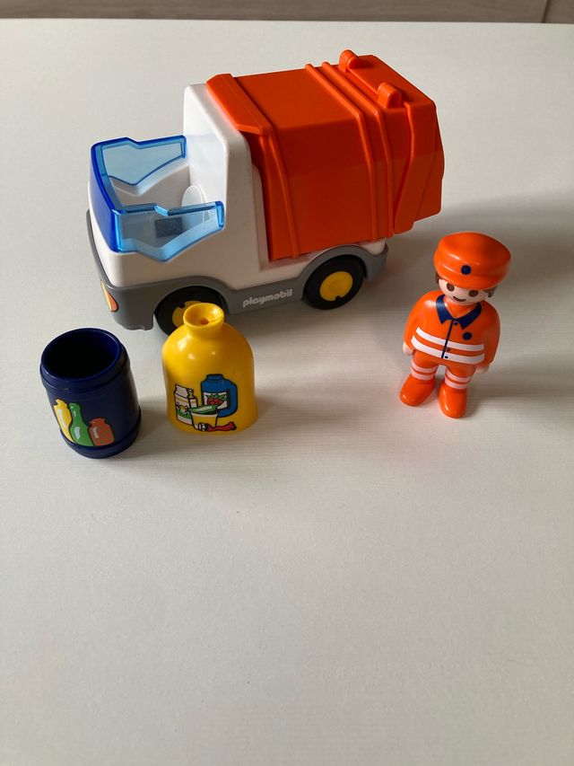 Detalles del productoSet de Playmobil que incluye un camión de basura y una figura.