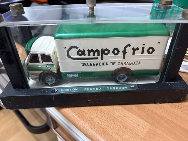Detalles del productoPreciosa maqueta de camión Pegaso Campofrío de la Delegación de Zaragoza. Se encuentra en perfecto estado, dentro de una vitrina de metacrilato.