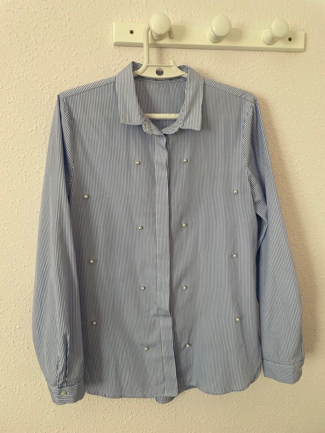 Camisa azul y blanca a rayas
