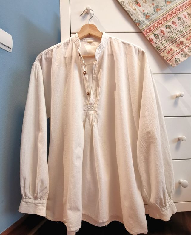 Camisa unisex de algodón rústico, cuello Mao con detalles. Hecho a medida, único diseño. Medidas : largo 75cm,sisas 57cm,largo mangas 56 y largo hombros 18.
