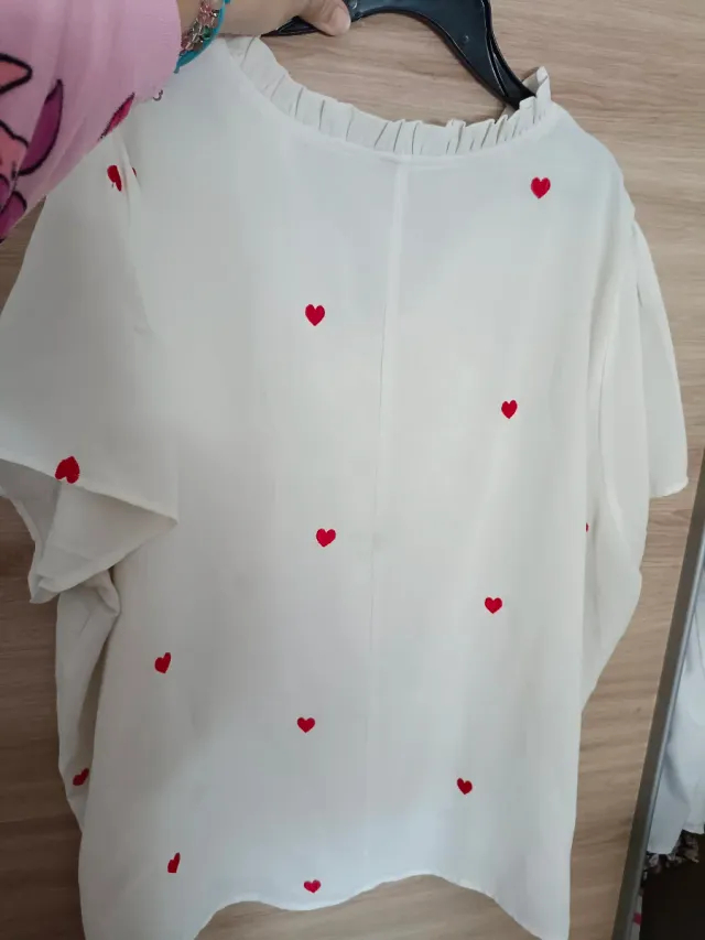 Camisa blanca con corazones rojos