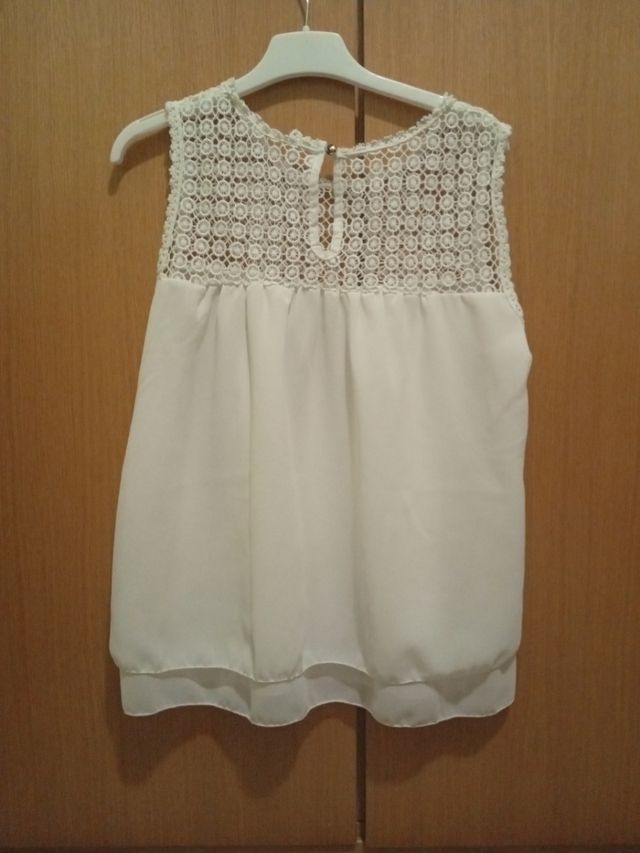 Camisa blanca con cuello de encaje