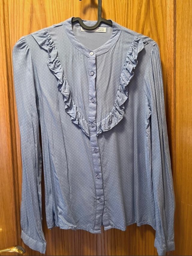 Camisa blusa suave azul lunares volante,suave
