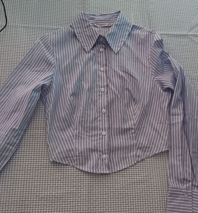 Camisa corta Stradivarius rayas azul y blanco Tall