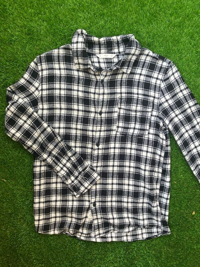 Camisa cuadros Mango blanco-negro