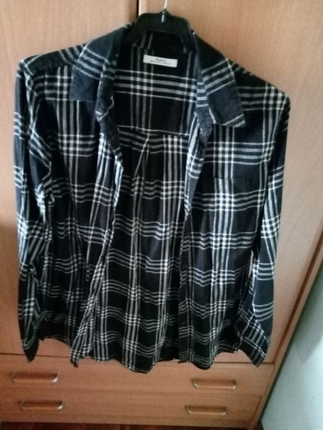 Camisa de cuadros blanca y negra