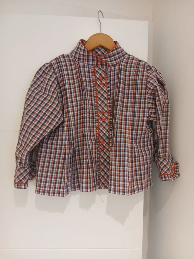 Camisa de cuadros con cuello alto traje casera