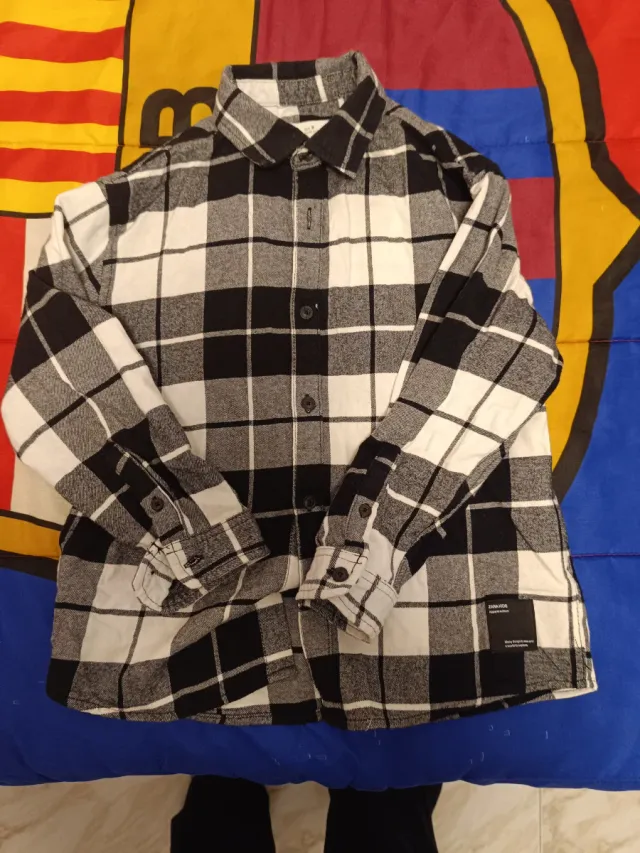 Camisa de manga larga con estampado de cuadros en blanco y negro. - Cuello camisero. - Cierre de botones. - Puños abotonados. Talla 8 zara