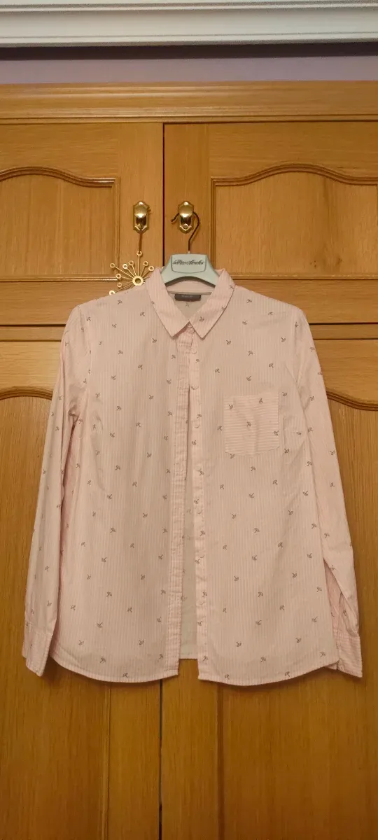 Camisa de rayas rosa y blanca