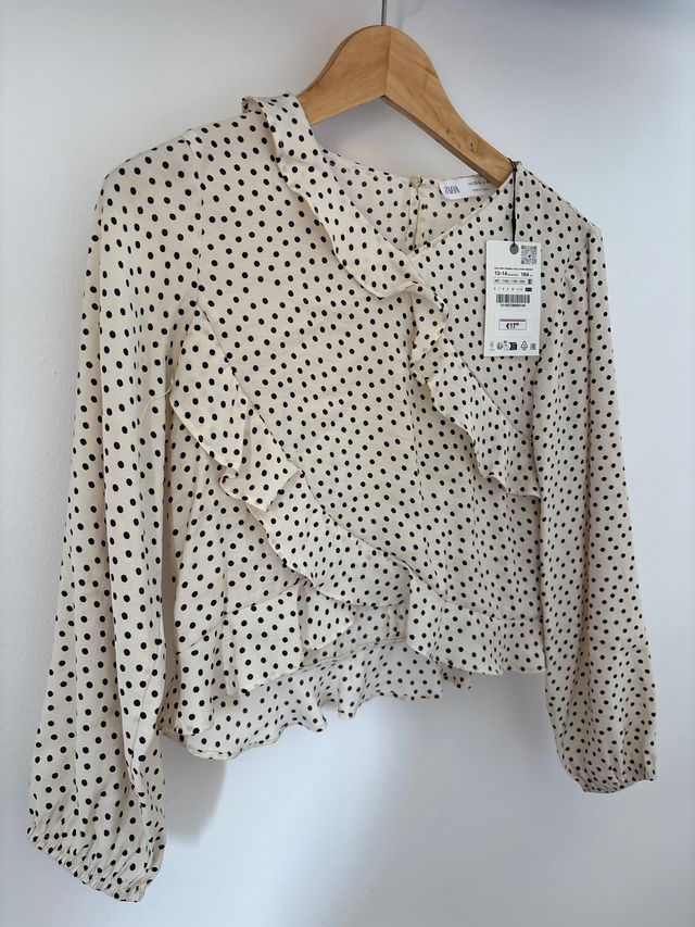 Camisa de Zara lunares beige y negro Talla 13-14.