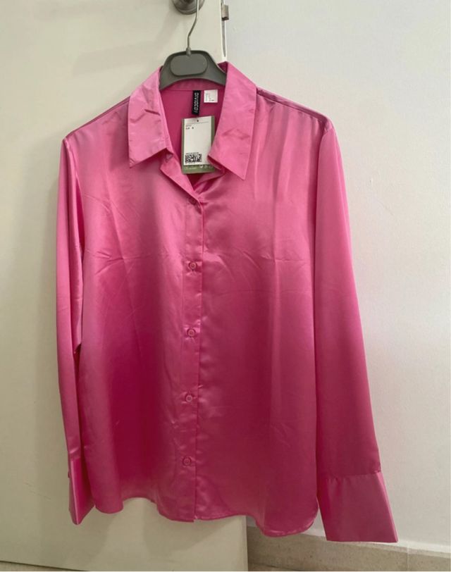 Camisa Divided efecto raso fucsia