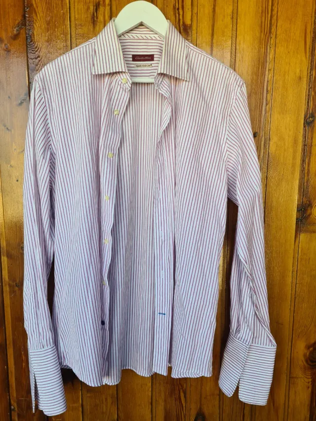 Camisa Emidio Tucci Riscas Rosa e Branco