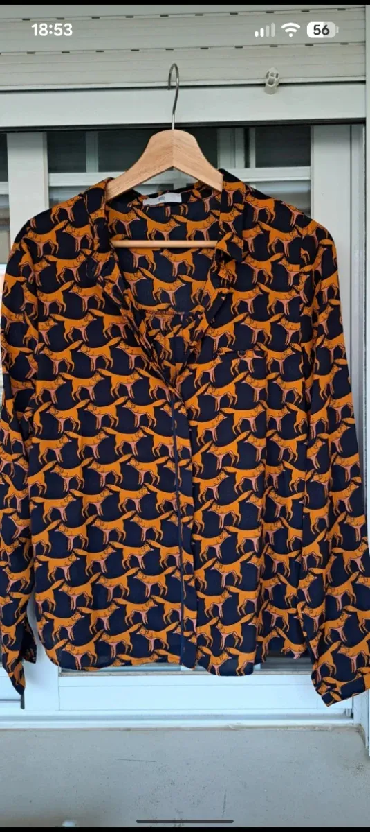 Camisa con un llamativo estampado de zorros en tonos naranja y azul.