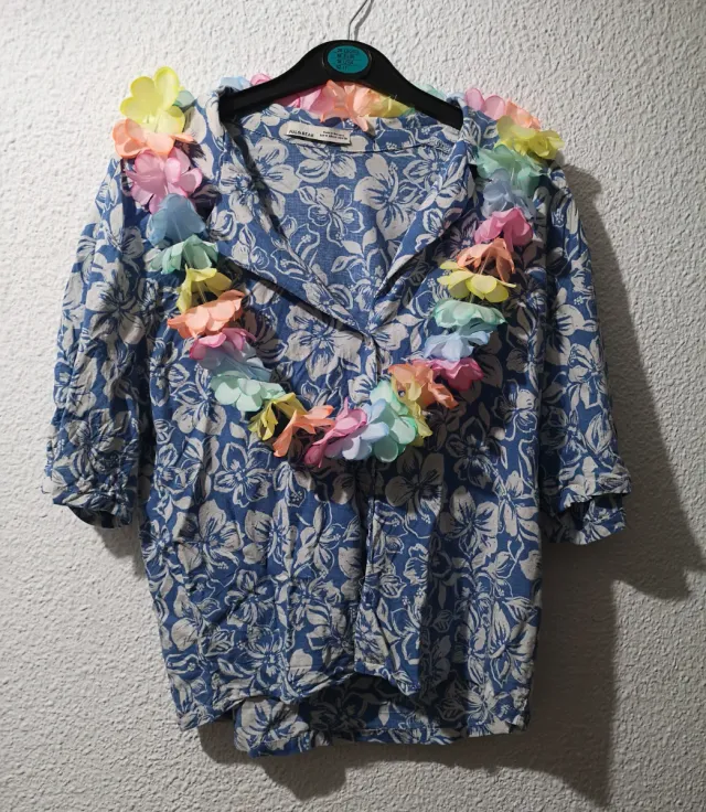 Camisa floral Pull&Bear azul y blanca