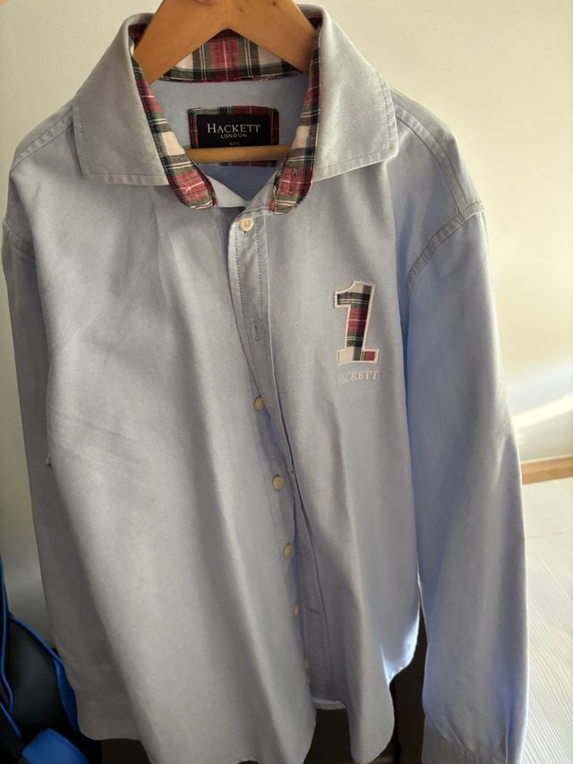 Detalles del productoPreciosa camisa de la marca Hackett para niño, en color azul. Está en muy buen estado.