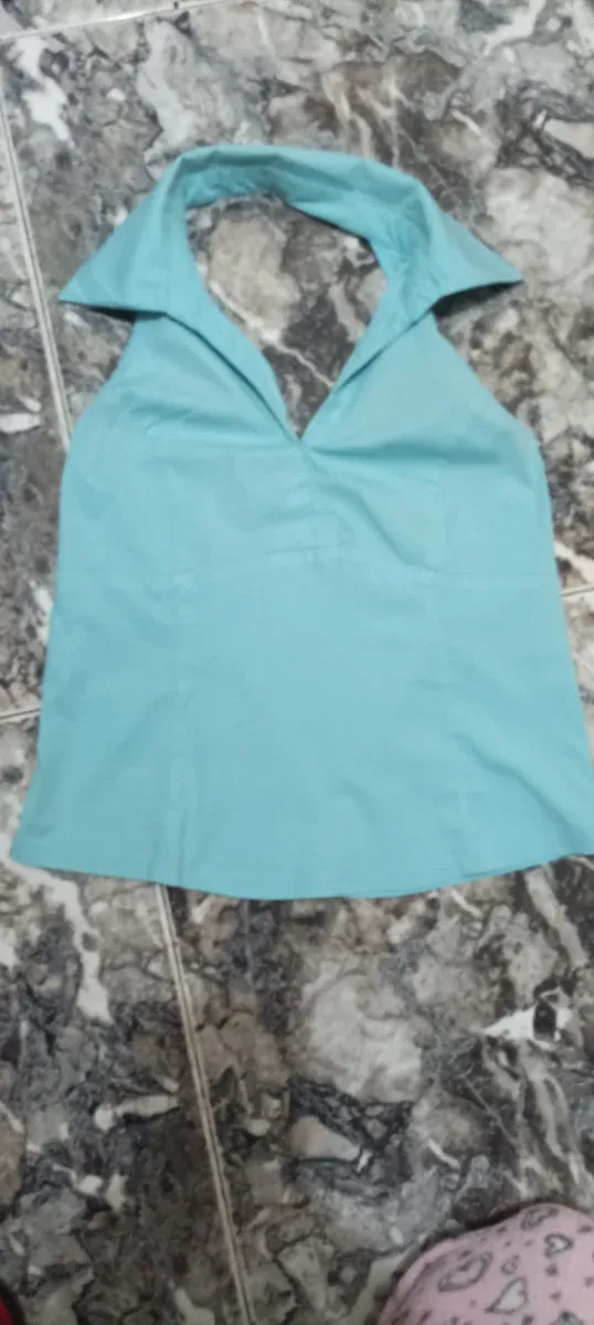 Camisa halter azul verdoso. Stradivarius. Talla L