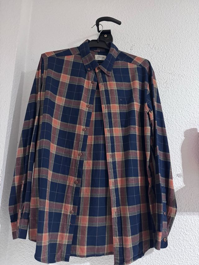 Camisa JACK&JONES cuadros azul y naranja Talla L