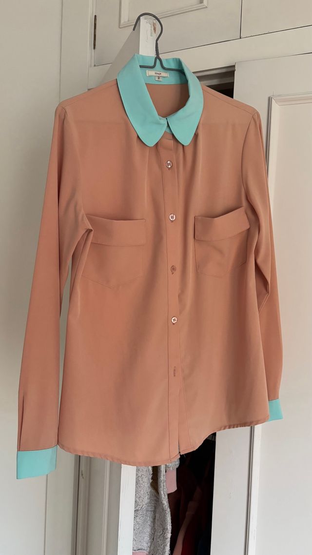 Camisa Kling talla 2 Nude y Turquesa