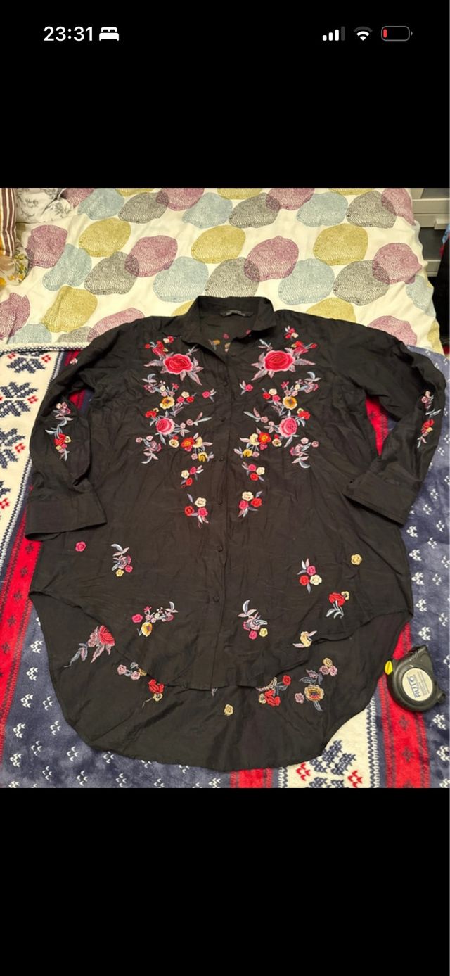 Camisa larga negra bordada