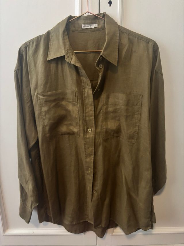 Camisa lino Oysho verde militar