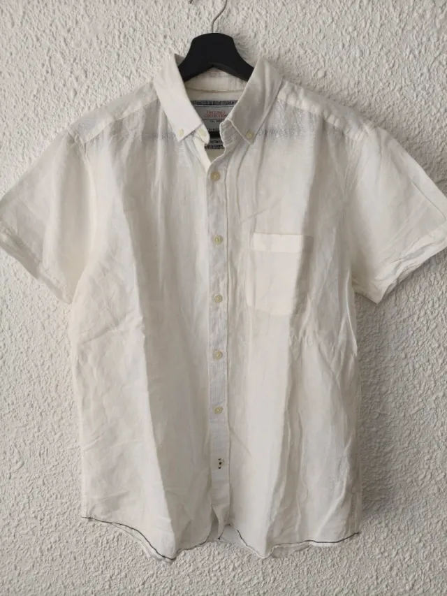Camisa de manga corta en color blanco. Presenta un diseño clásico con cuello abotonado y un bolsillo en el pecho.