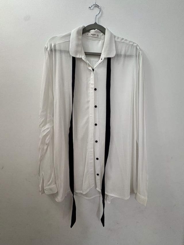 Camisa Mango Lazo Blanca y Negra