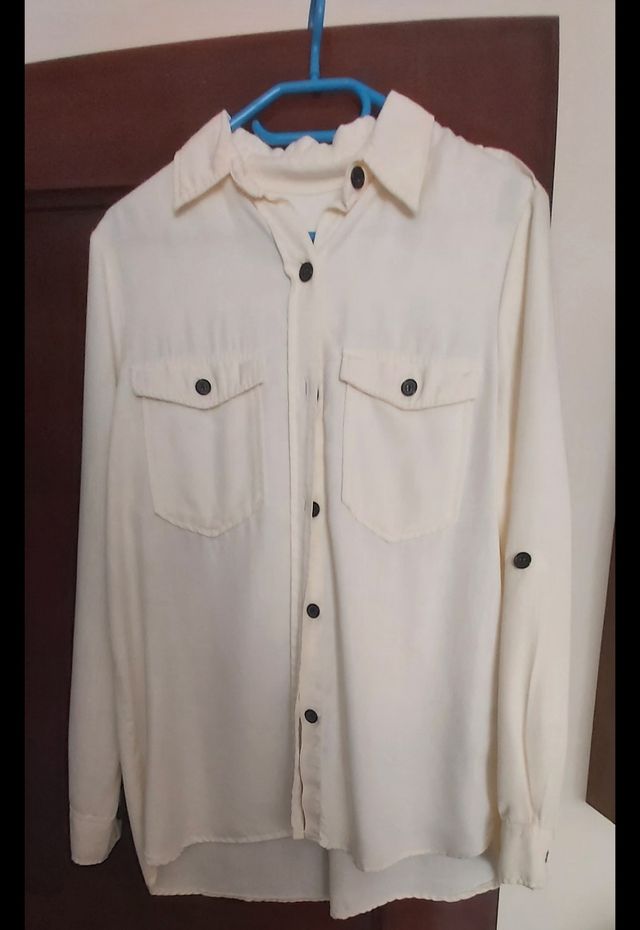 Camisa amplia se puede utilizar como camisa o sobre camisa sin estrenar color beige la manga se puede dejar larga o 3/4 TALLA M MARCA ZARA precio 5€