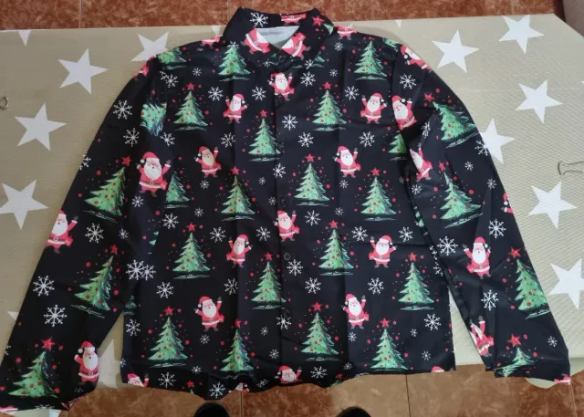 Camisa Navideña Negra Papá Noel