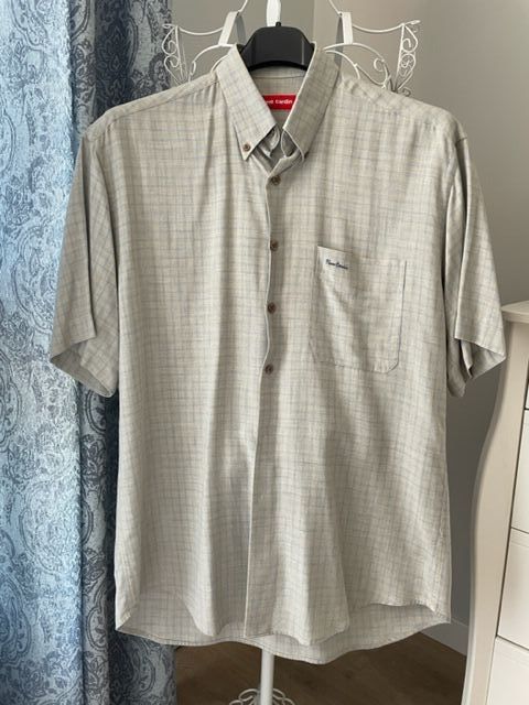 Camisa caballero marca Pierre Cardin. Original. Color beis con cuadros en azulado. Perfecto estado. La talla equivale a una L