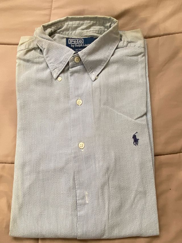 Camisa de vestir de manga larga con un discreto estampado de rayas verticales.