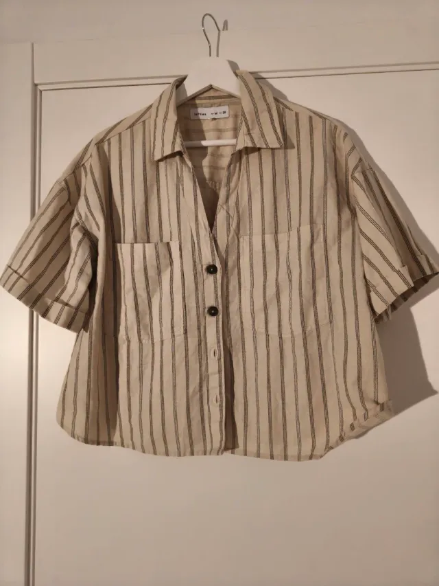 Camisa Rayas Beige Manga Corta Talla M