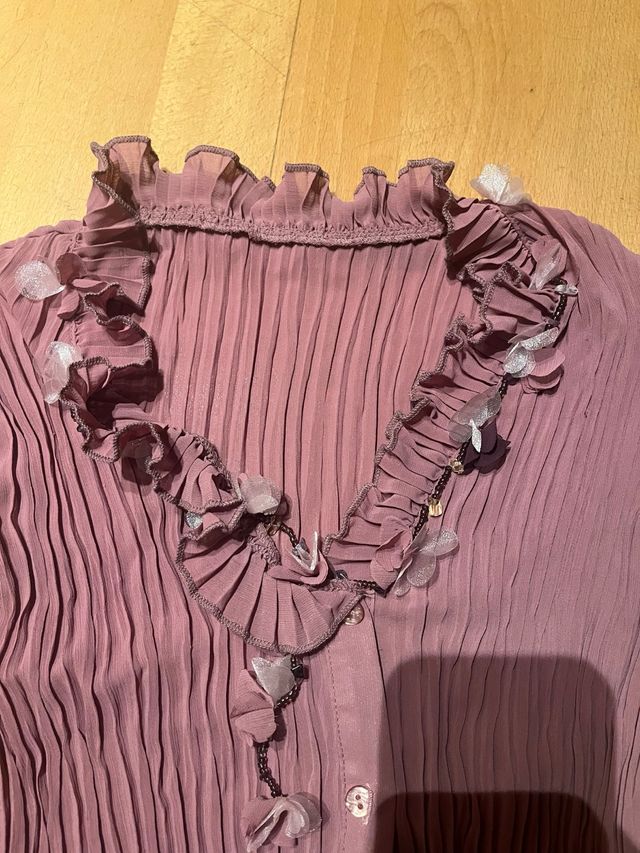 Camisa rosa con cuello de flores