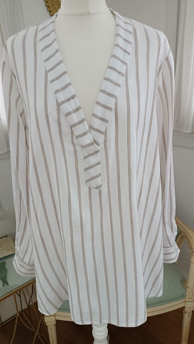 Camisa Samoon rayas beige blanco