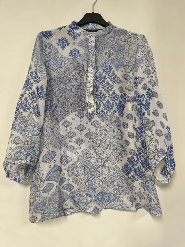 Camisa seda Massimo Dutti azul y blanco