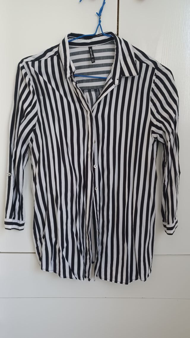 Camisa Stradivarius Rayas Blanco y Negro