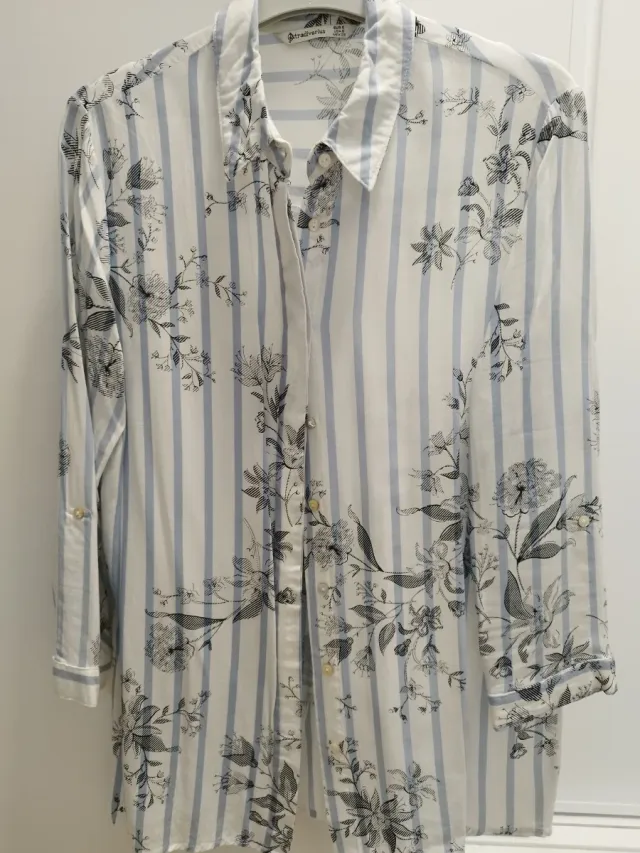 Camisa Stradivarius Rayas Flores Talla S
