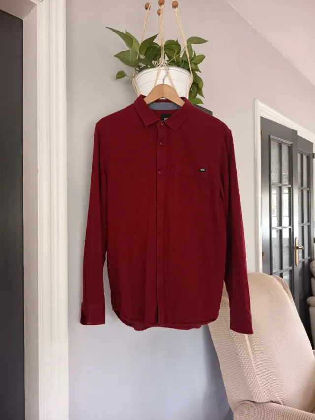 Camisa de manga larga de la marca Vans en color rojo burdeos. Presenta un diseño clásico con cuello y botones.