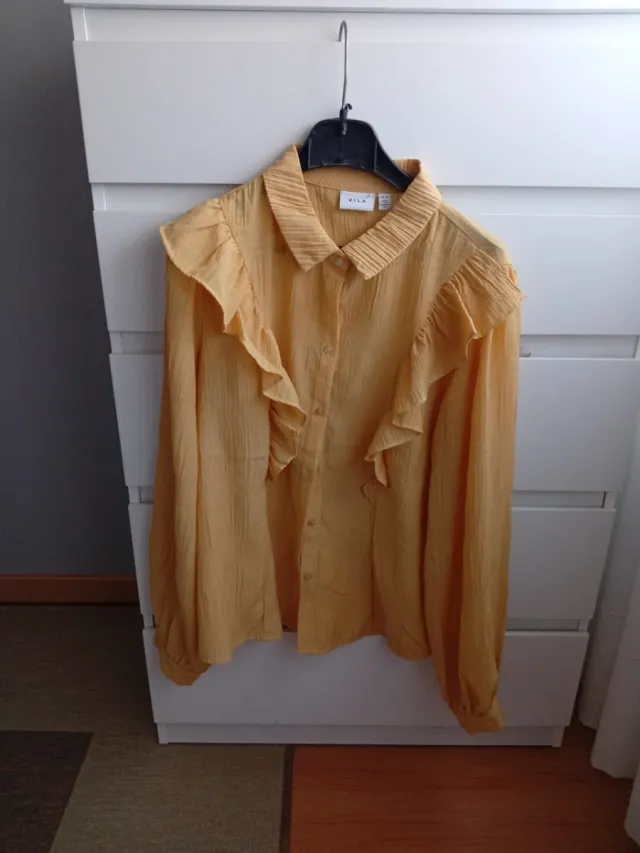 Camisa Vila color mostaza volantes talla L