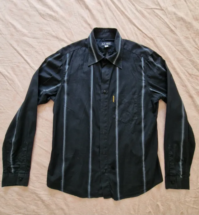 Camisa Vintage Armani Jeans Negra Rayas Auténtica