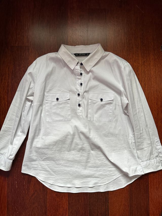 Camisa Zara Basic Mujer Entallada Blanco Talla XXL