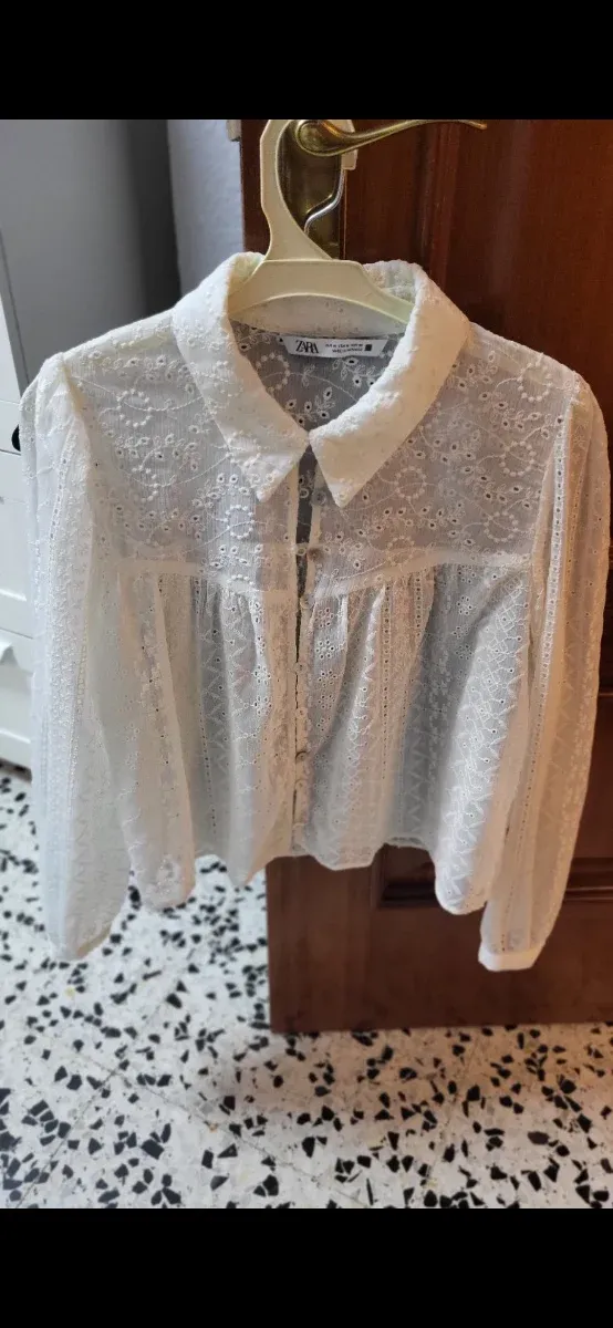 Camisa Zara encaje blanca mujer