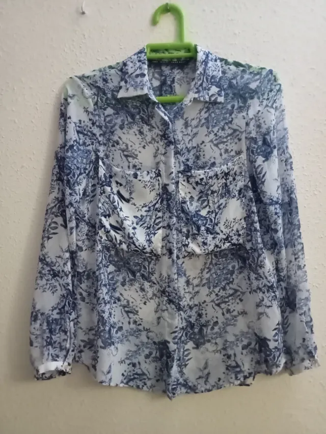 Camisa Zara Estampada Azul y Blanca Talla XS