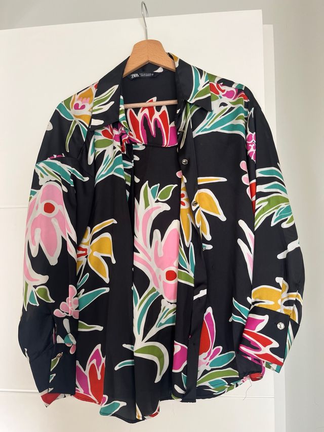 Camisa Zara Estampada Flores Talla M