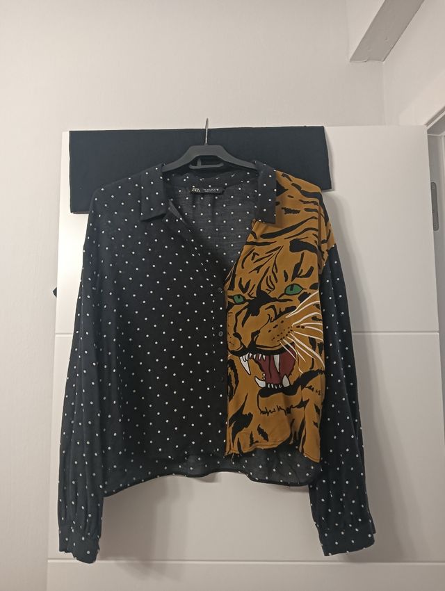 Camisa Zara Estampada Tigre y Lunares Talla L