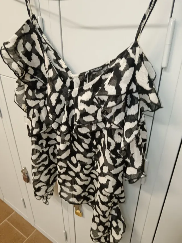 Camisa Zara Estampado Animal Negro Blanco